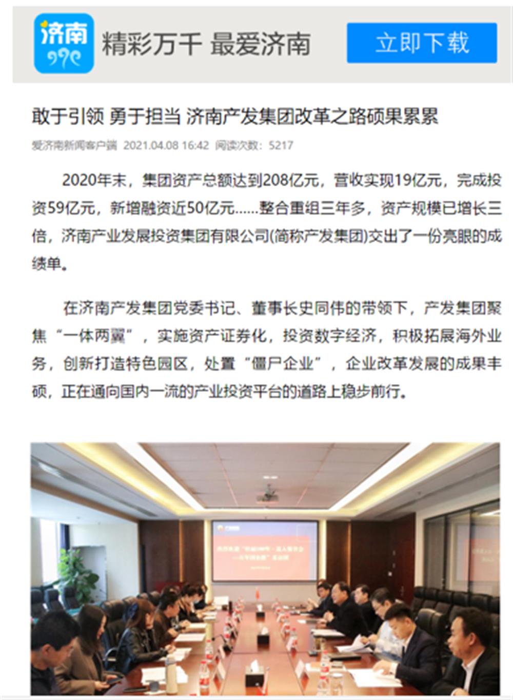 近日,市國資委舉辦的“壯麗100年·邁入強(qiáng)省會——百年國企路”媒體團(tuán)一行到訪濟(jì)南產(chǎn)發(fā)集團(tuán)后,人民網(wǎng)、大眾網(wǎng)、閃電新聞、濟(jì)南電視臺、濟(jì)南日報(bào)、帶濟(jì)南等多家國家、省市級媒體聚焦報(bào)道了集團(tuán)改革發(fā)展的成果經(jīng)驗(yàn)。